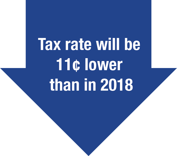 With voter approval of the approximately 30¢ increase in the property tax rate for the Growth Management Bond Package, our tax rate will be 11¢ lower than in 2018, thanks to a recent series of tax cuts and our district leaders' responsible management of our tax dollars. As always, senior residents will see no increase in their tax rates now or in the future because of the senior citizen homestead exemption.